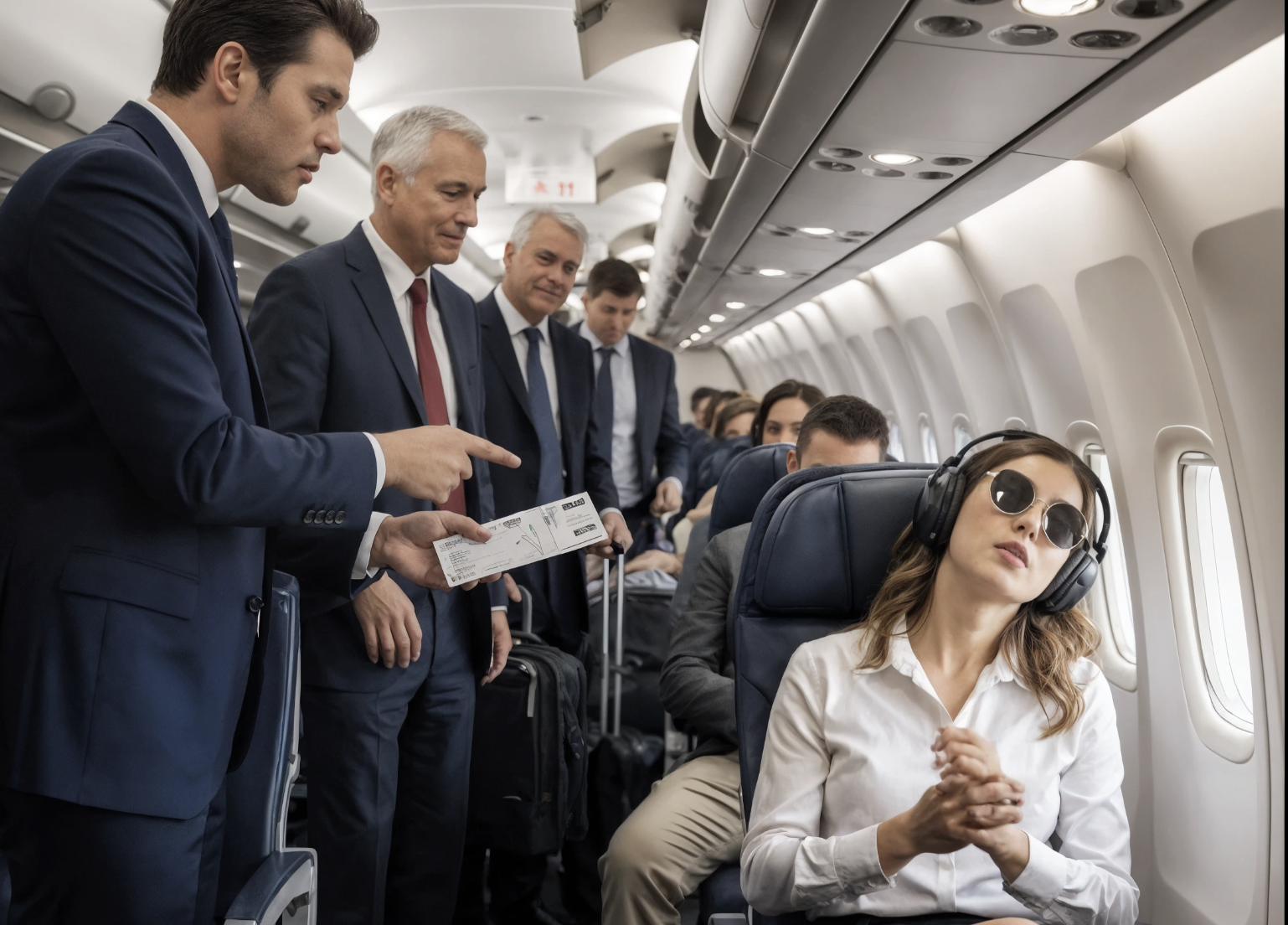 Stavo volando dall’altra parte del Paese per partecipare a una convention annuale, insieme a due colleghi senior. Praticamente l’intero aereo era pieno di persone del nostro stesso settore. Mentre risalivamo il corridoio salutando volti conosciuti, sono arrivato alla mia fila… e ho trovato una donna sui trent’anni seduta al mio posto. Indossava enormi occhiali da sole e un paio di cuffie da studio. Mani ben appoggiate in grembo, testa reclinata sul poggiatesta come per dire che stava “dormendo” e che non andava disturbata. Dai, metà dei passeggeri non aveva nemmeno finito di imbarcarsi.
