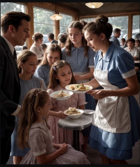 In una notte di pioggia, in una cittadina sonnolenta, Emily Parker—giovane cameriera dal grembiule sempre in ordine e le mani screpolate dal sapone—notò quattro bambine ferme sotto l’insegna tremolante della sua tavola calda. Avevano i vestiti strappiati, il viso smunto, lo sguardo di chi ha freddo allo stomaco prima ancora che alle ossa. Nessun adulto nei paraggi, nessuna casa a cui tornare.