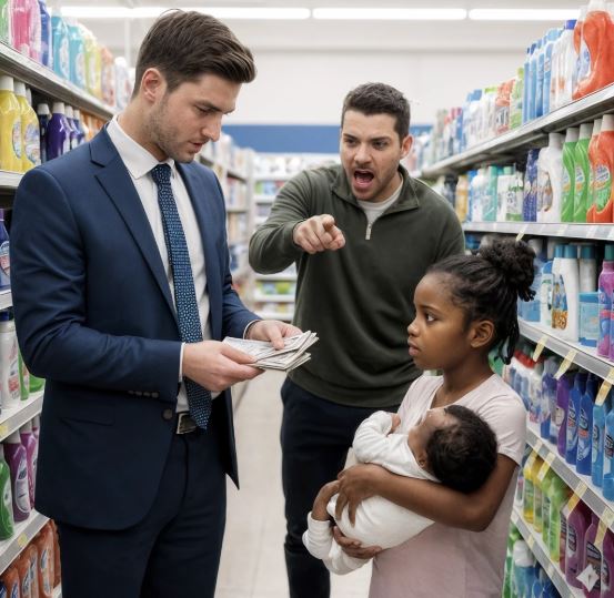 La voce arrivò limpida, dritta dal centro di un corridoio del supermercato. La bambina che l’aveva pronunciata indossava una maglietta strappata, scarpe spaiate e stringeva tra le braccia esili un neonato e un cartone di latte. Non poteva avere più di nove anni, ma nello sguardo c’era la serietà di chi ha visto già troppa vita.
