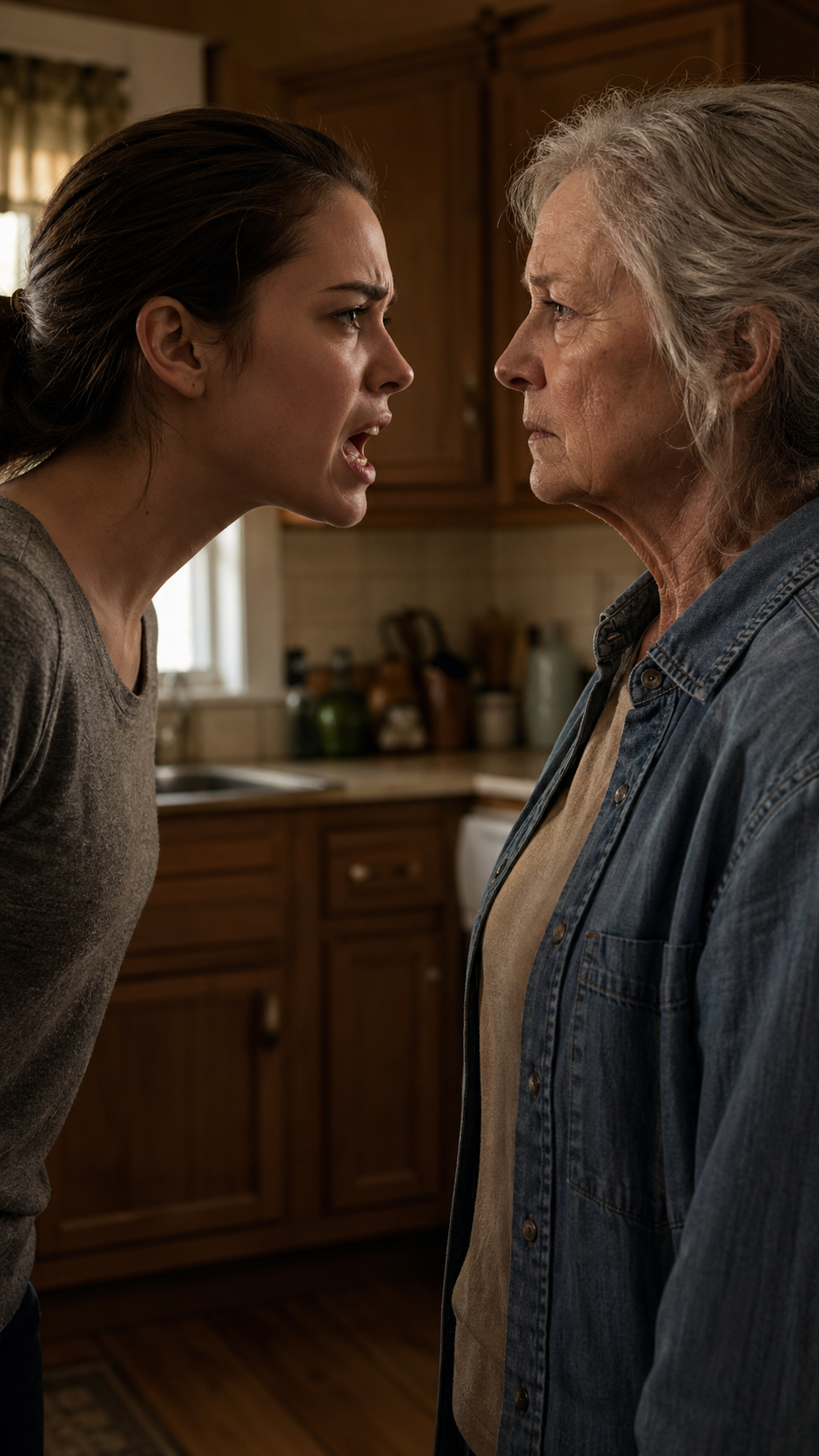 Resasi conto che la recita era finita e che la nuora era rimasta impassibile, la suocera iniziò a agitarsi. Il suo volto si contorceva.
