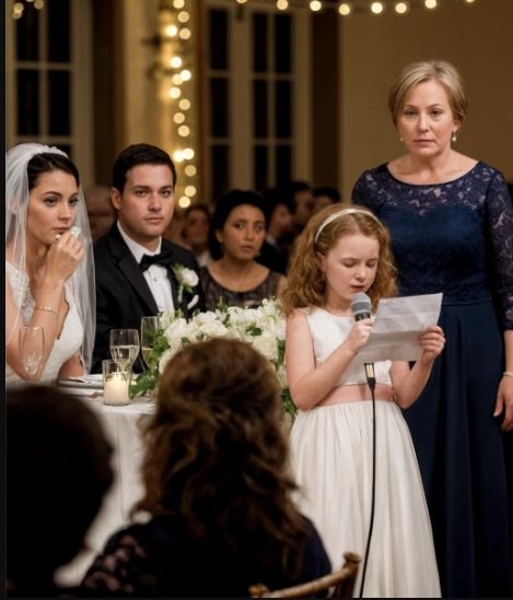 Al ricevimento di nozze, mia suocera si alzò e, con un sorriso tirato, disse: «Mio figlio merita una donna vera, non una madre single». La sala cadde in un silenzio di vetro. Io provai a mascherare il colpo con un mezzo sorriso, la mano che tremava sul calice. In quel momento Ivy, la mia bambina di otto anni, salì senza esitare sul palco. Afferrò il microfono con tutta la serietà del mondo e disse: «Papà mi ha detto di leggere questa lettera se qualcuno avesse offeso la mia mamma». Poi dispiegò con calma il foglio e iniziò ad aprirlo.